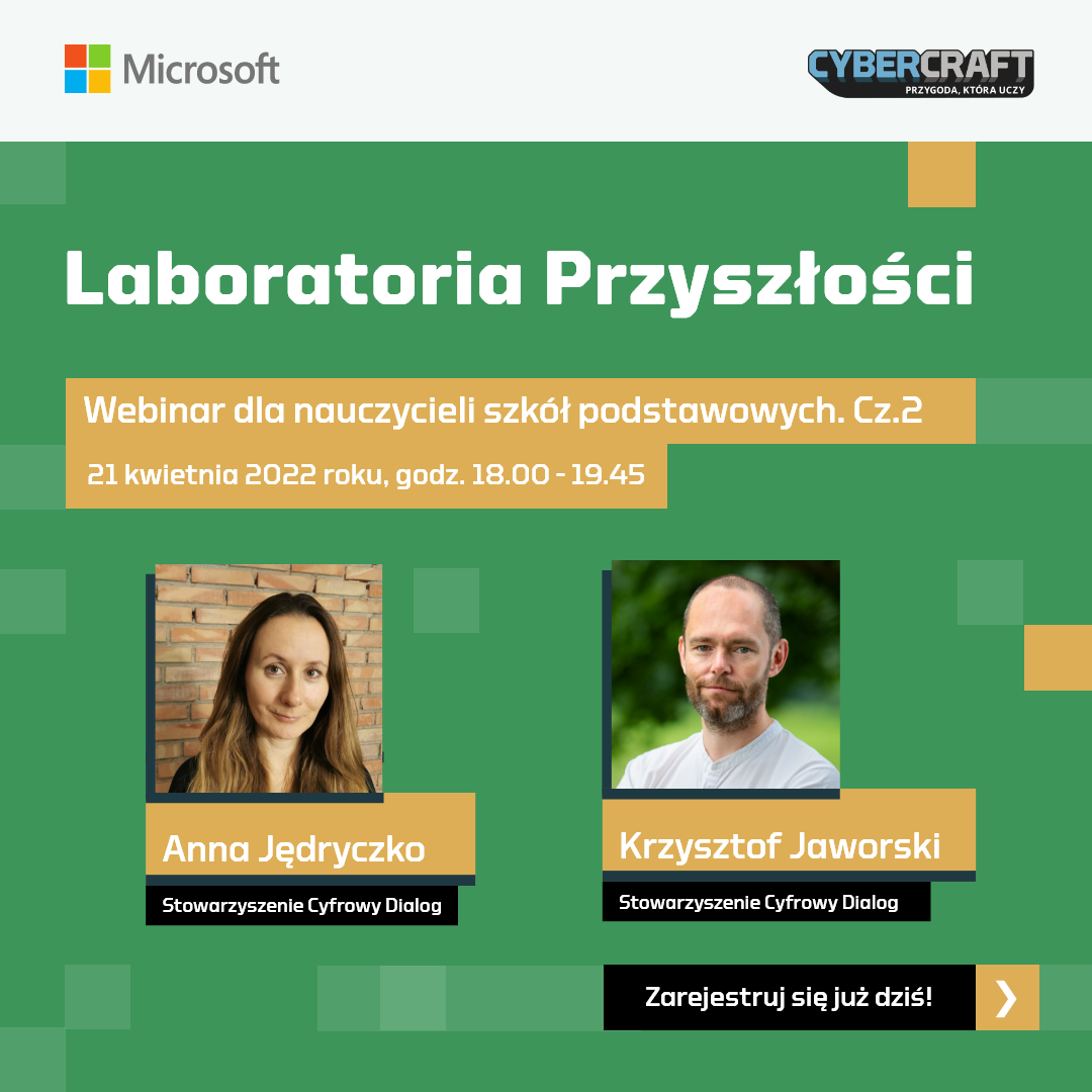 Odp: "Cybercraft - przygoda, która uczy" Laboratoria Przyszłości. Webinar dla wszystkich nauczycieli i nauczycielek szkół podstawowych 21 kwietnia 2022, godzina 18:00 👉 Zarejestruj się!